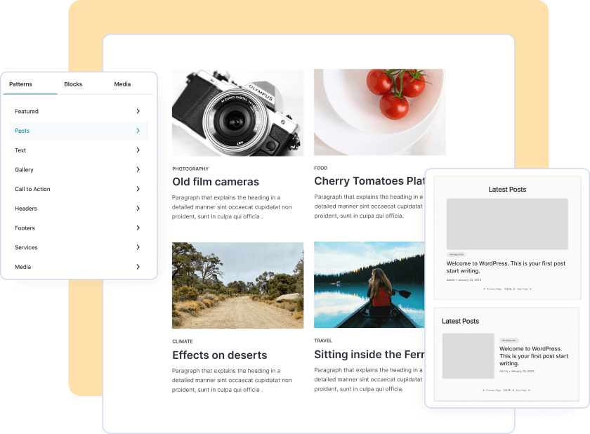 Block patterns are pre-designed block layouts that we can easily insert into their content. These patterns can help to save time and create visually appealing designs. Allows us to create custom themes using the block-based template.